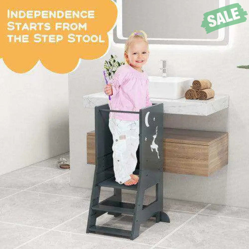 ● 3 in 1 Multifunctional Design: This innovative learning tower serves as a step stool white board and chalkboard. The step stool can raise the child to counter height to enjoy parent-child time and cultivate children's hands-on ability while the double-side board cultivate children's painting ability. Plus it comes with 3 water-based pens for your child to unleash their creativity.