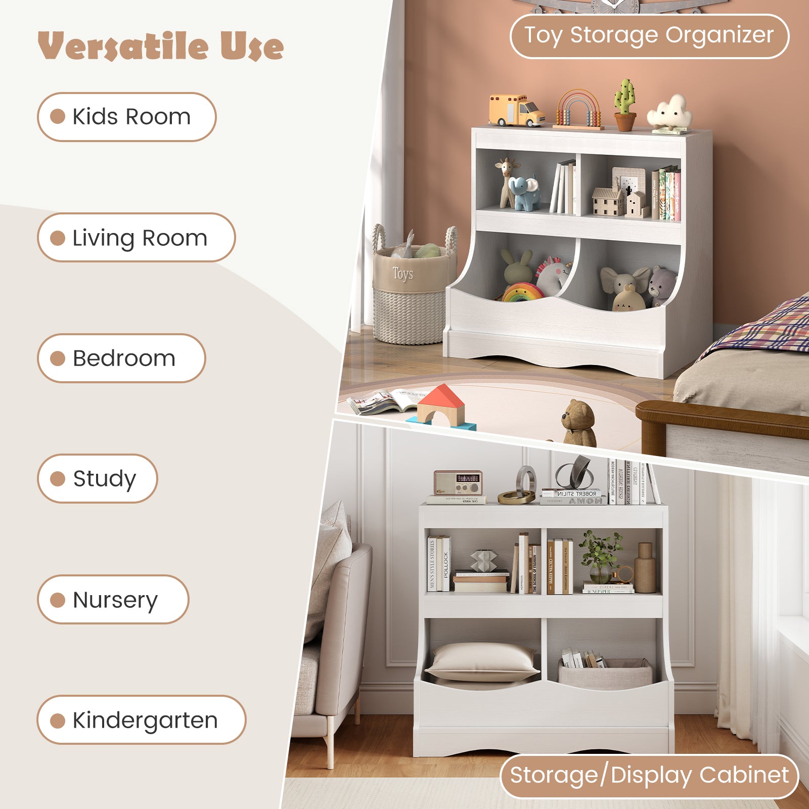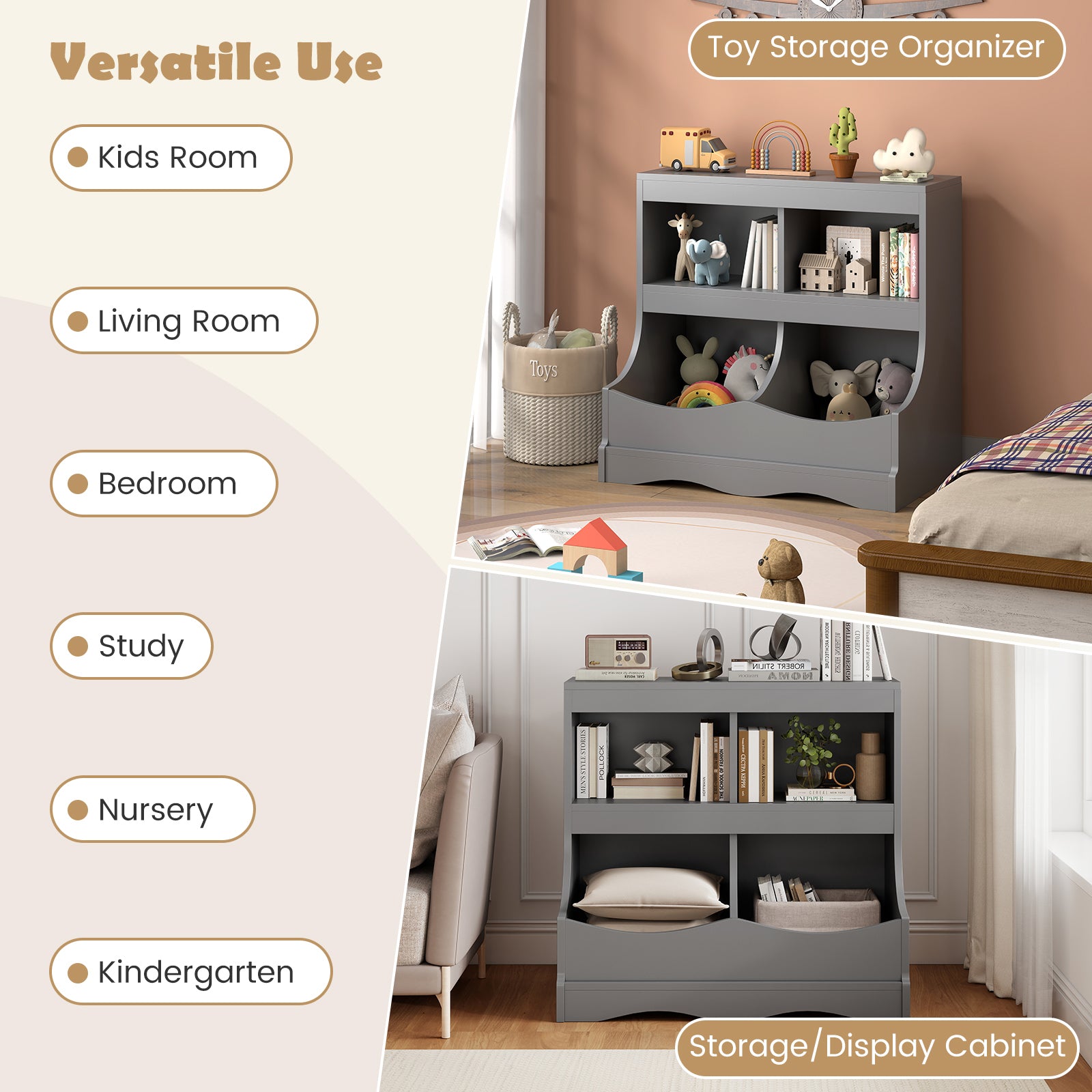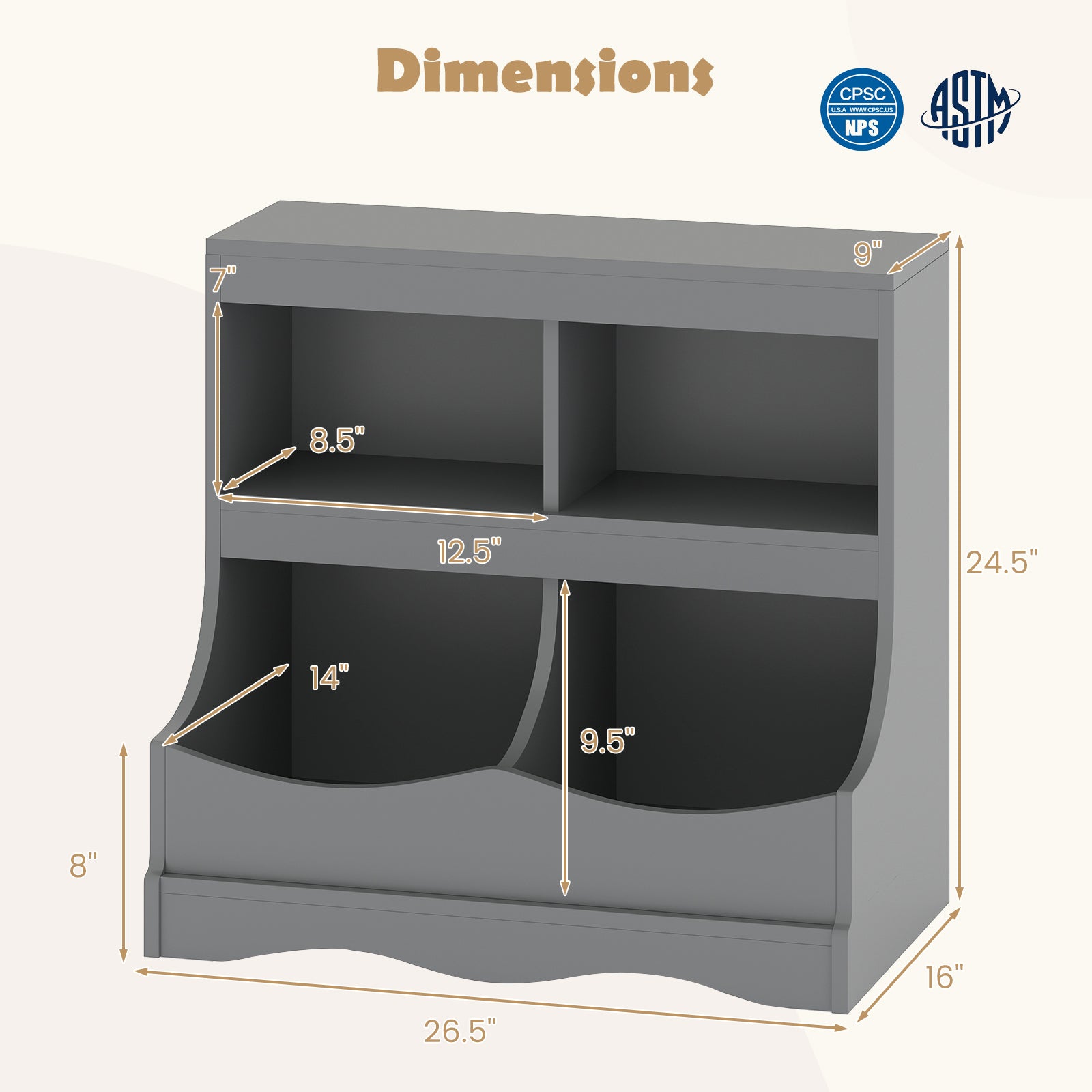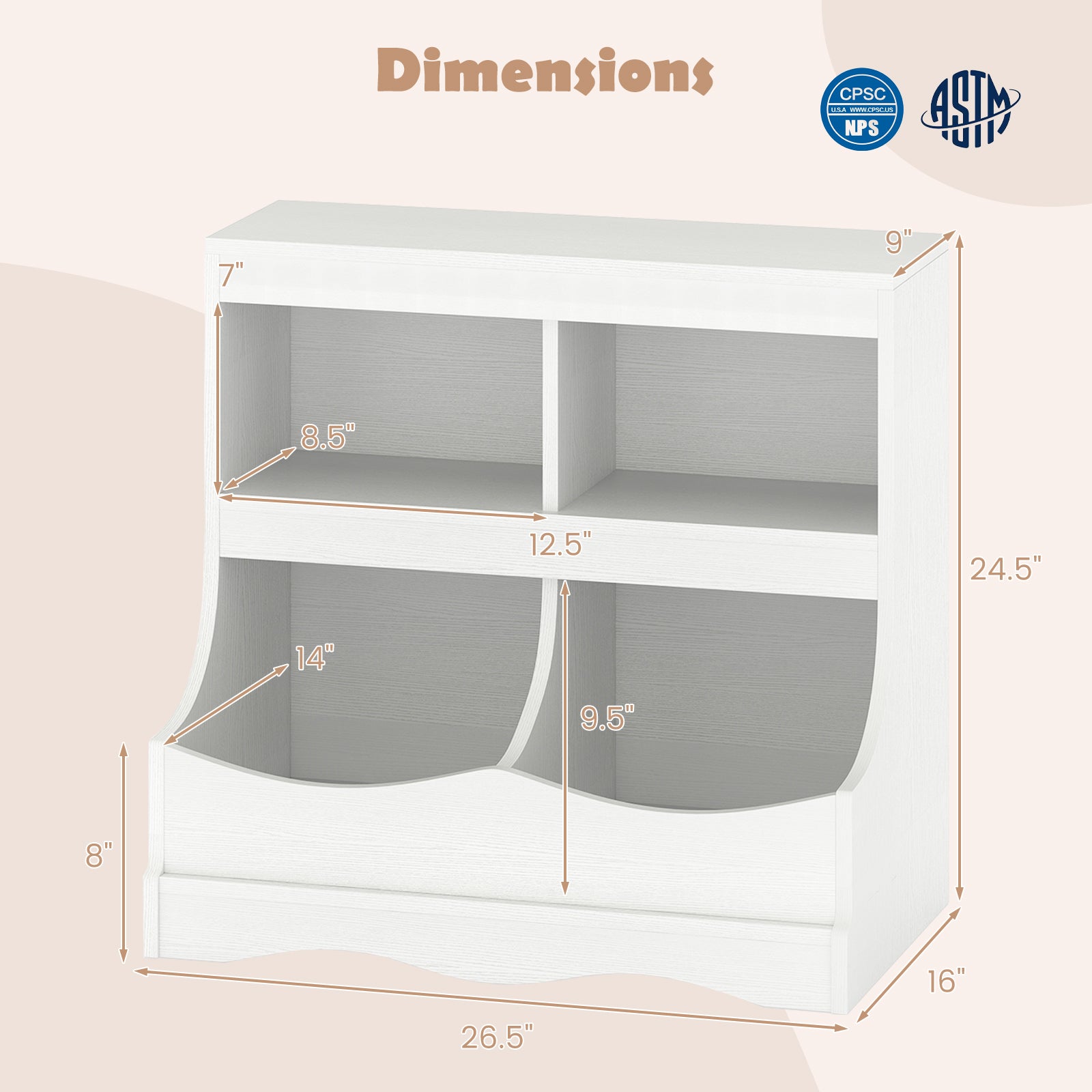 â 4 roomy cubbies encourage children to develop tidy habitsâ Spacious top is ideal for displaying photos or decorationsâ Child-friendly height for easy access to books and toysâ Crafted with smooth rounded edges for added safetyâ 2 anti-toppling kits to enhance stability and securityâ Anti-slip foot pads for stability and floor protectionâ Ideal for kids room playroom bedroom or daycareâ Thoughtful details include fastener with screwâ Assembly needed