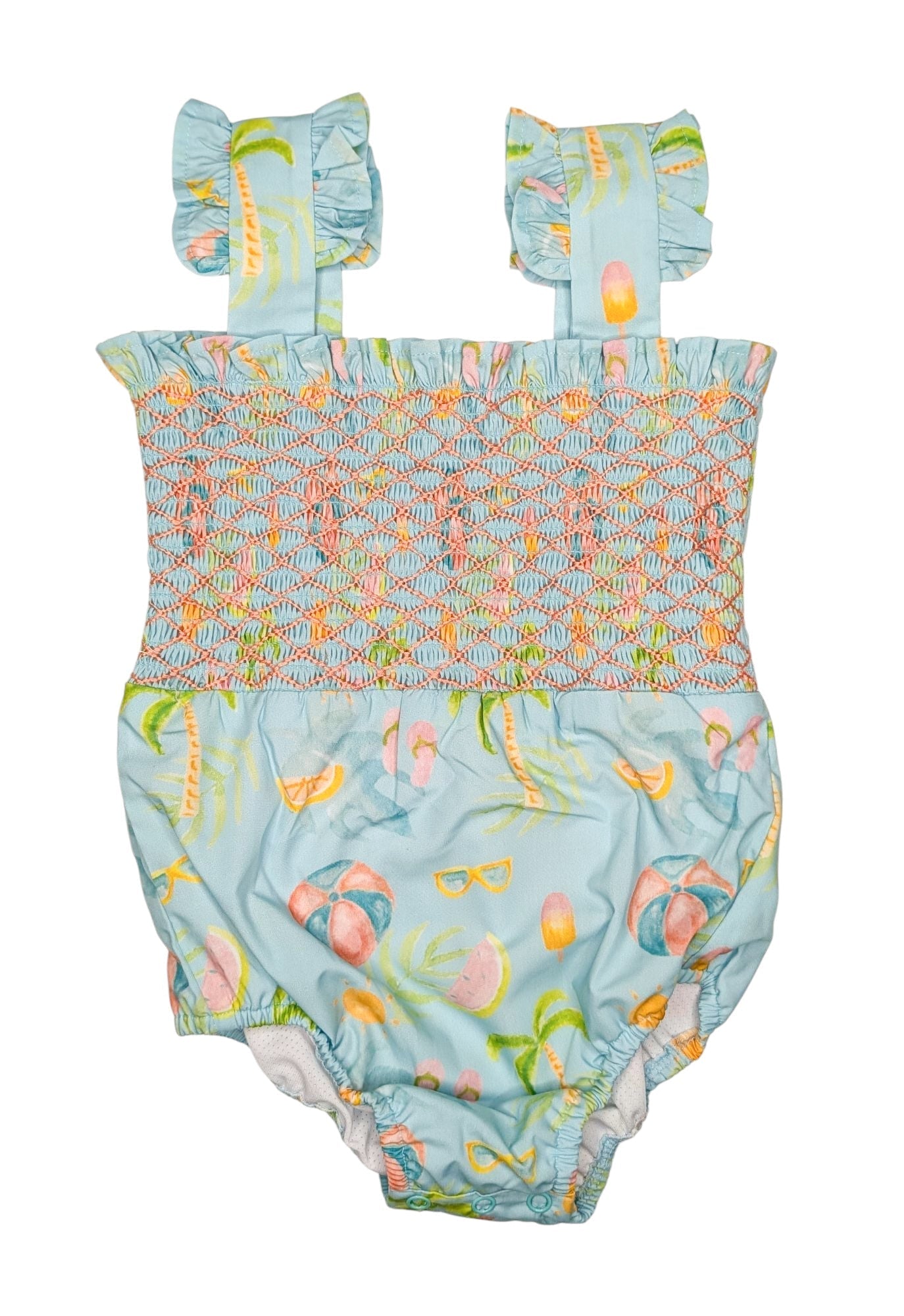 Dress your little one in Southern charm and timeless style with our Smocked Girls' Swimsuit! Featuring a beautiful blend of green, blue, and pink, this adorable swimsuit is designed with classic smocked detailing for a sweet and sophisticated look.