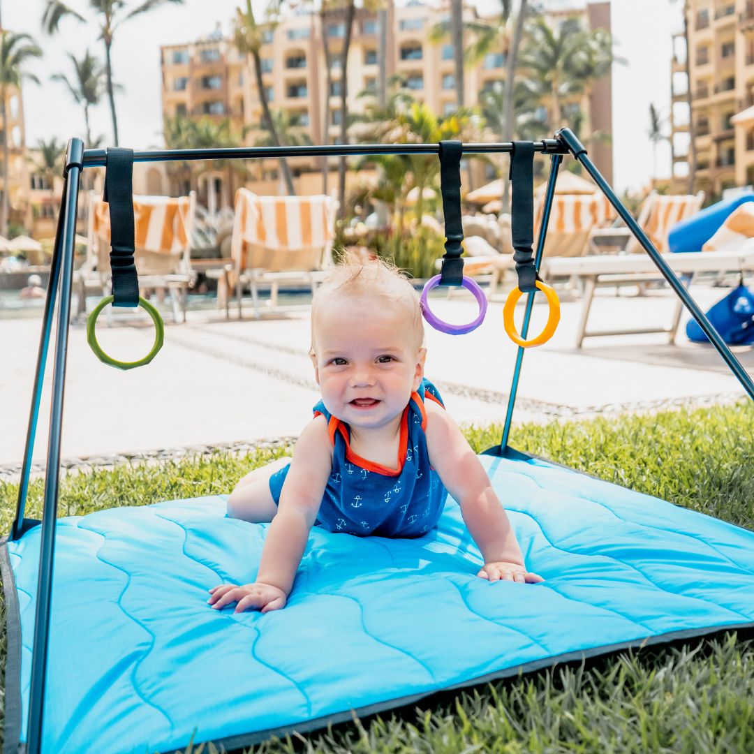 Imagine being a new parent and not having to stress about what to bring when you head out to visit friends or go on a weekend getaway. A compact and lightweight baby activity gym that you can tuck in your bag or under your stroller is the answer to problems new parents don't yet know they have. Gone are the days of stuffing your car and lugging around big, bulky baby gear.