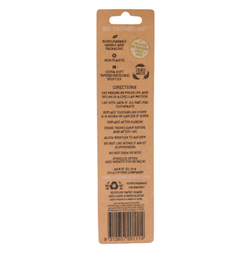 ZERO WASTE - Our toothbrushes are Biodegradable, Vegan, and GMO-free - even the packaging is biodegradable and made from corn - no plastic!