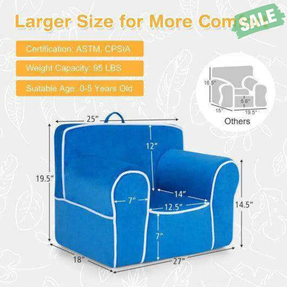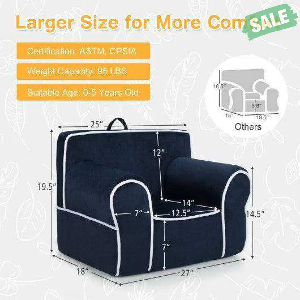 The kid’s sofa with beautiful color ( pink/ blue/ grey/ navy blue) can be a real eye-catcher in playroom kid's room living room and kindergarten. Thus it's a perfect gift for your 0-5 years old kids. Besides velvet fabric cover and high-density sponge filling ensure comfortable sitting experience. Kids can read books eat snacks draw pictures and play games on the seat. Moreover it can support a weight up to 95 lbs. ASTM and CPSIA certifications allow for higher security. Furthermore we also designed it with convenient handle and smooth zipper for easy moving and cleaning. It's also easy to assemble in a few minutes.