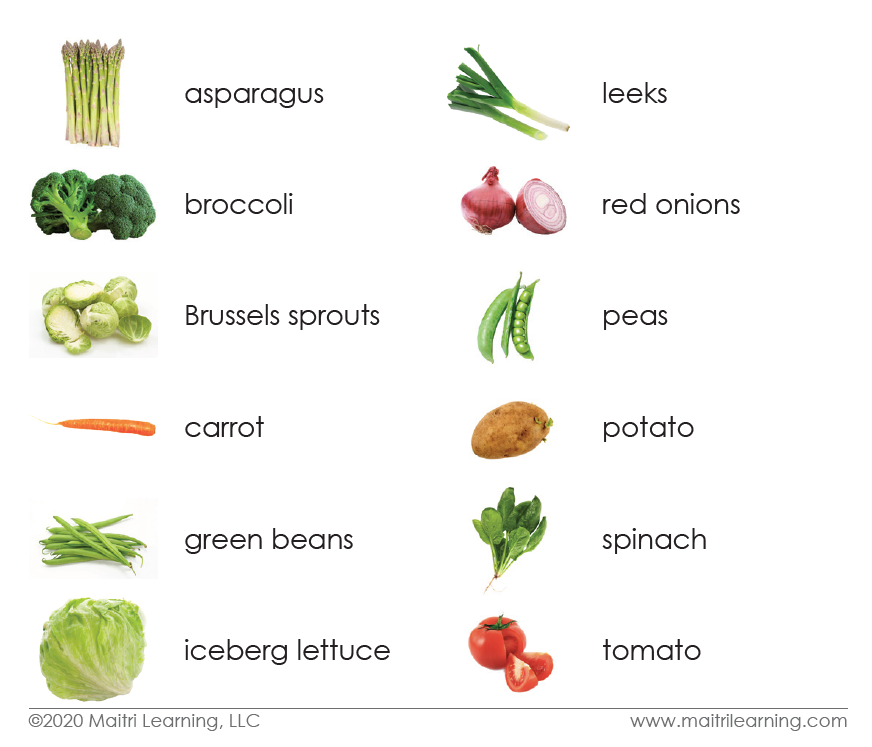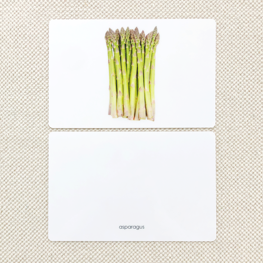 Use these captivating photo cards for vocabulary lessons or conversation. Or, bring them with you to the grocery store. The children will be very interested in finding the right picture that matches the right vegetable. This is such a simple activity that creates some profound connections.