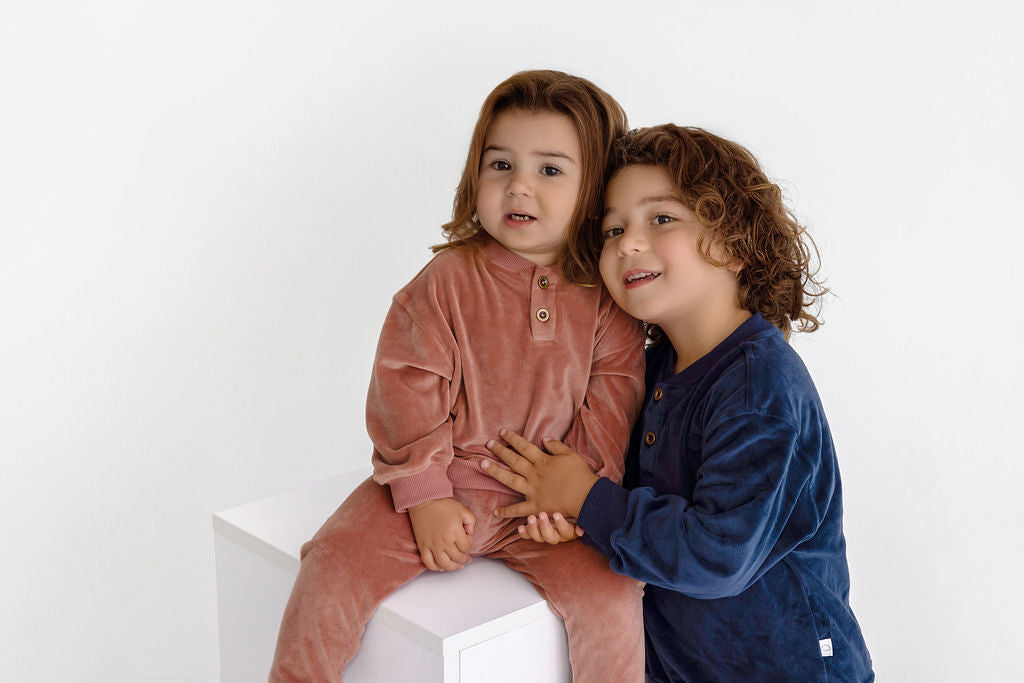 Experience ultimate comfort and style with our Velour Henley Set in Dusty Rose. Made from a smooth fabric, this classic set offers a comfy and loose fit and a stylish Henley look. Perfect for any occasion, your child will be dressed looking confident and luxurious in our Velour Henley Set.
