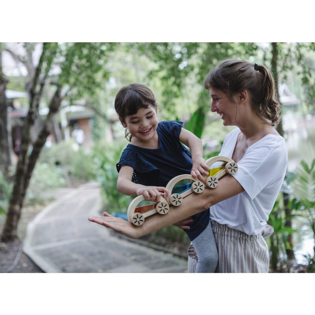 The PlanToys Wautomobile is a semi-circular-shaped car that comes with colored water on the inside with the option of red, blue, or yellow. Children will enjoy rolling the wautomobile around and learning about new colors and color theory by putting the cars adjacent to one another to allow light to pass through to create new colors. Which color will you choose for your wautomobile?