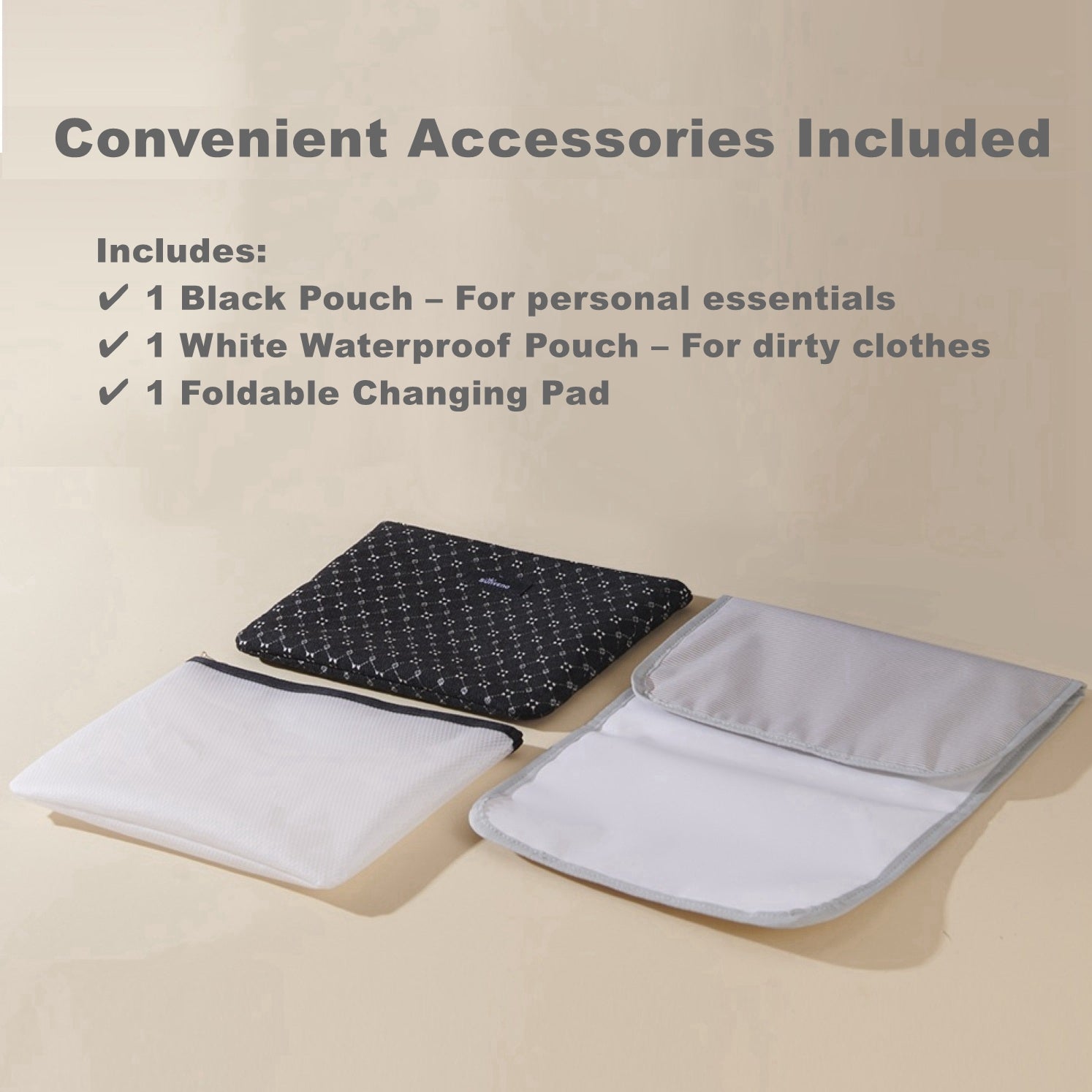 This versatile mommy bag serves multiple purposes, such as a diaper bag, changing bag, maternity bag, travel bag, weekend bag and hospital bag.