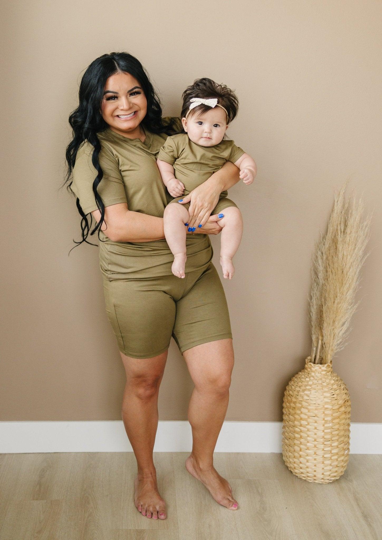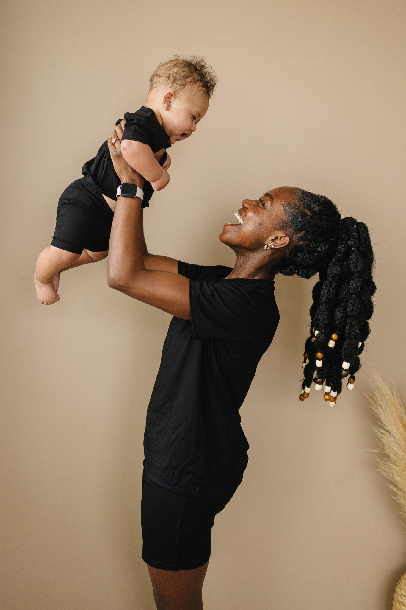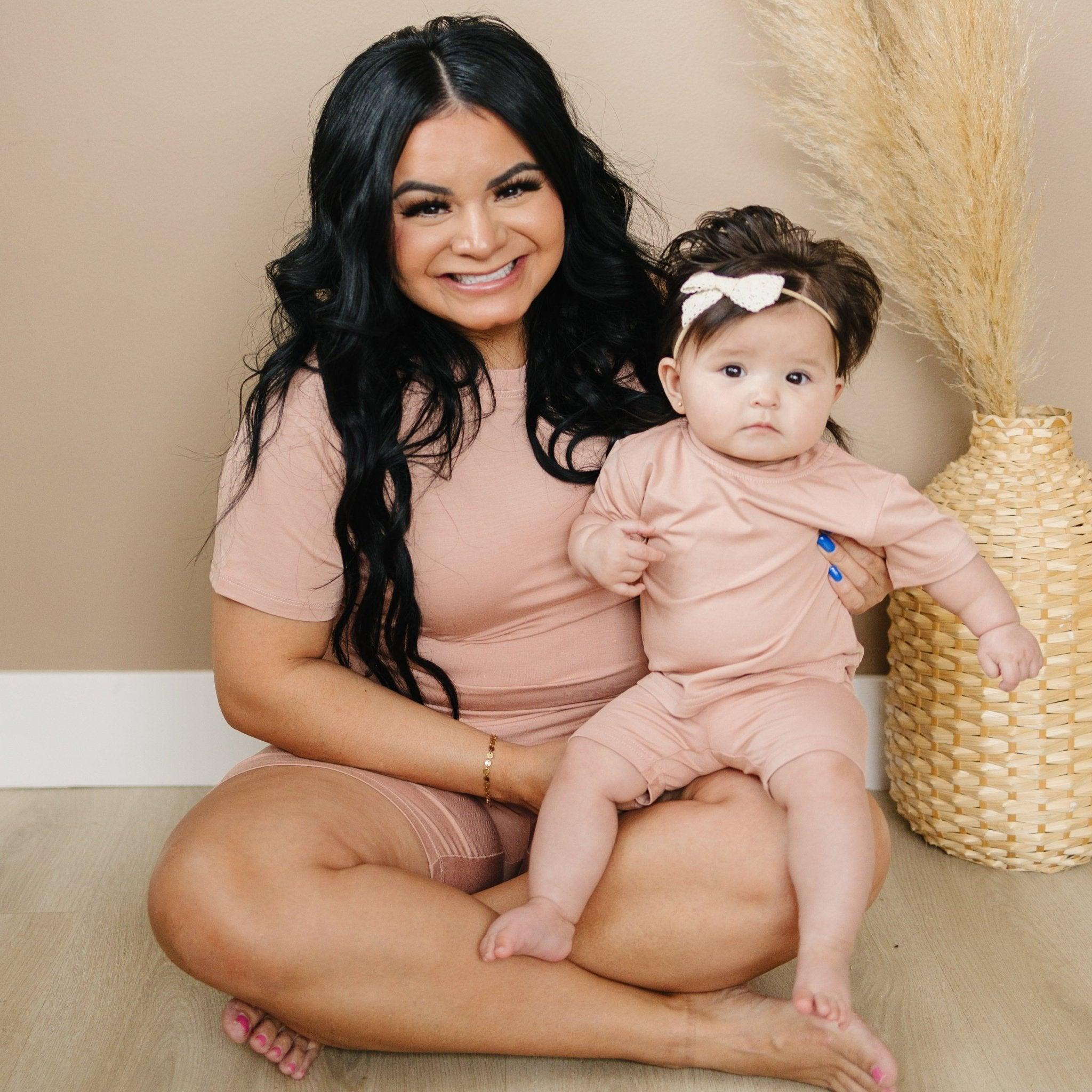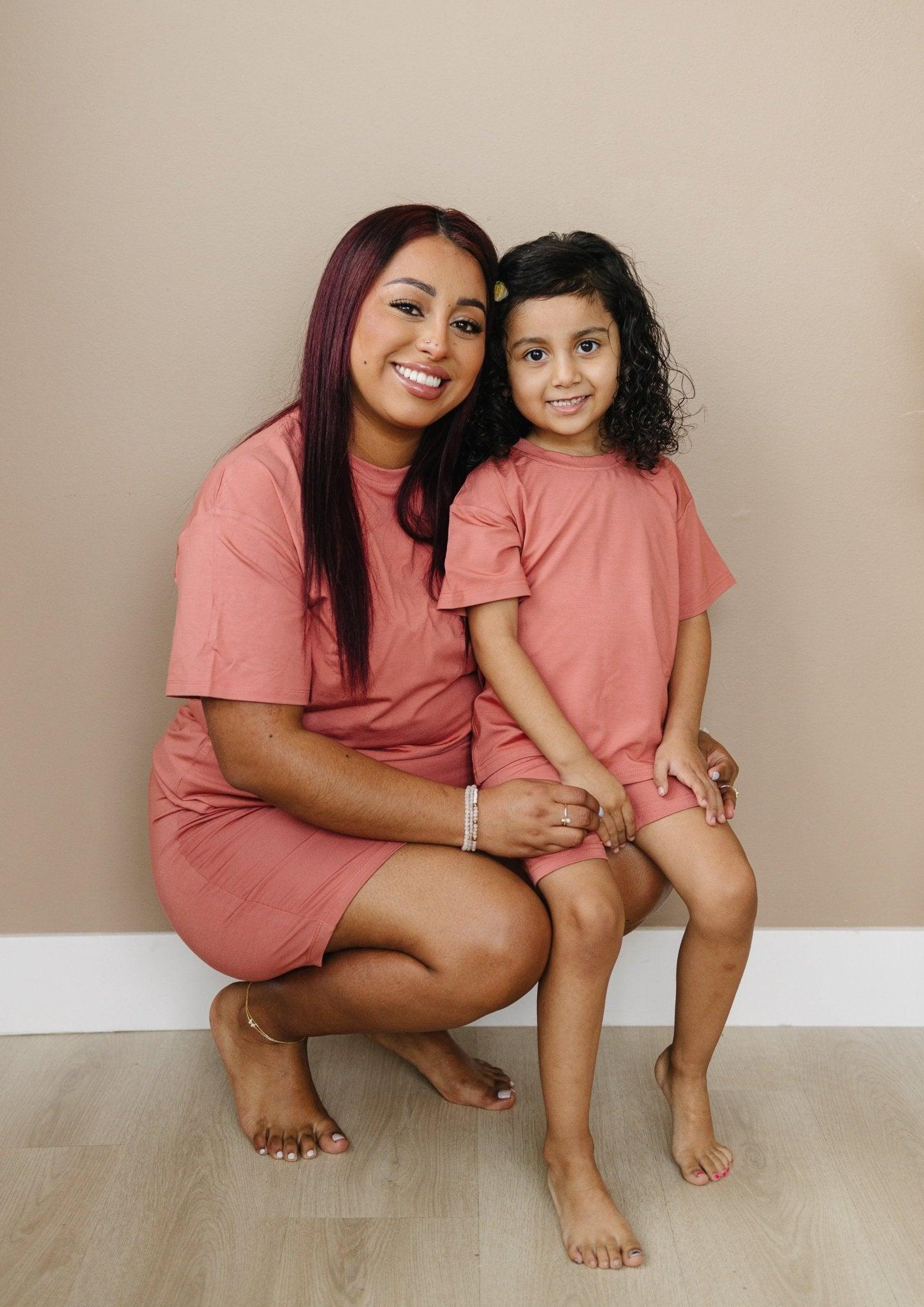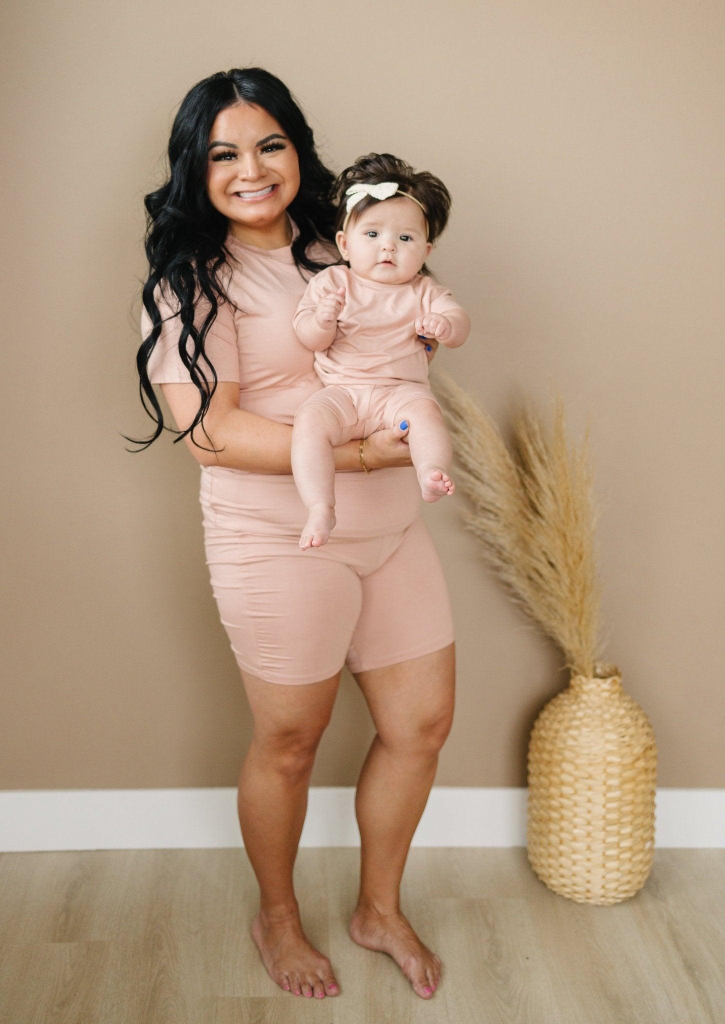 Introducing our Women's Bamboo Tee & Bike Shorts, the epitome of comfort and sustainability. Crafted from 260gsm of luxuriously soft bamboo viscose (94%) with a touch of spandex (6%), this set offers unparalleled comfort and flexibility. The thicker bamboo makes this the perfect daywear set. Available in sizes XS-XXL and four colors perfectly coordinated with our Baby/Toddler Bike Shorts Sets, ideal for Mama & Me matching.