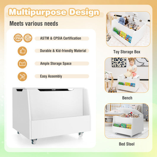 ● Large Storage Space for Kids' Items: This rolling toy storage organizer is designed with 2 storage compartments. Toys blankets clothes sports supplies etc. can be stored inside the toy box while the front open bookshelf provides extra space for displaying kids' books drawing boards and more. It can help kids develop a good habit of organizing things.